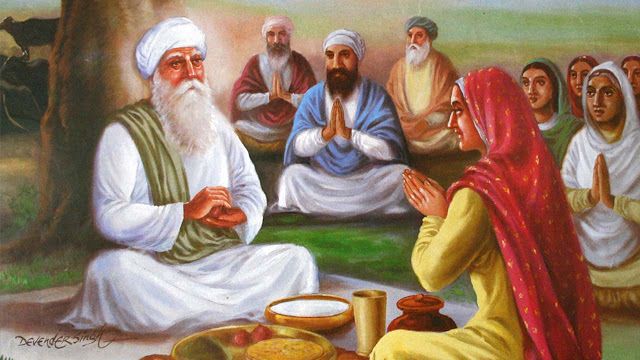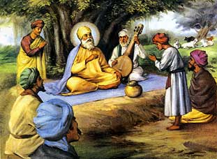 One day Bhai Bura heard the sounds of singing from the fields. When he investigated, he saw Guru Nanak sahib Ji, who travelled with Bhai Mardana Ji, singing Kirtan and doing veechar with the Sangat. So Bhai Boora went home to his mother and asked her for a pitcher of milk.