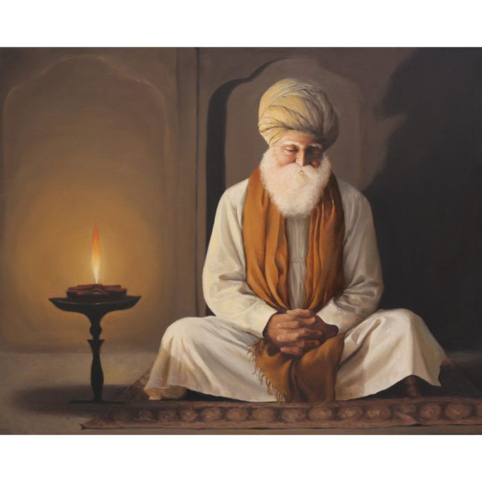 Baba Buddha Ji, so wise and majestic, said to the Sangat, “Now let me show you how to close the doors to the outside world and reveal the True Guru inside you. Baba Ji made a hole at the back of the house and entered through there. When Guru Ji asked him, Baba Buddha Ji said, just like you have said in Gurbani,